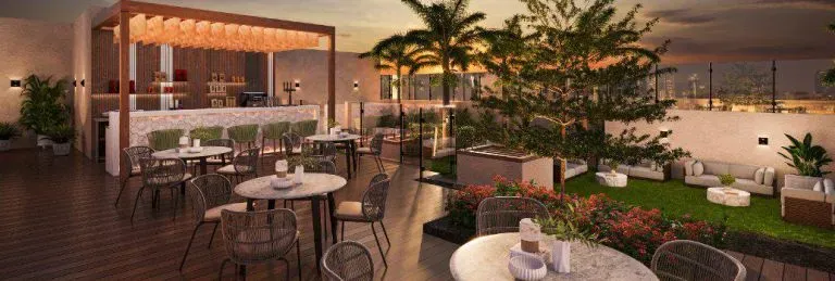 Lush landscaped gardens, nature trails, modern gym, and open-air yoga/meditation deck